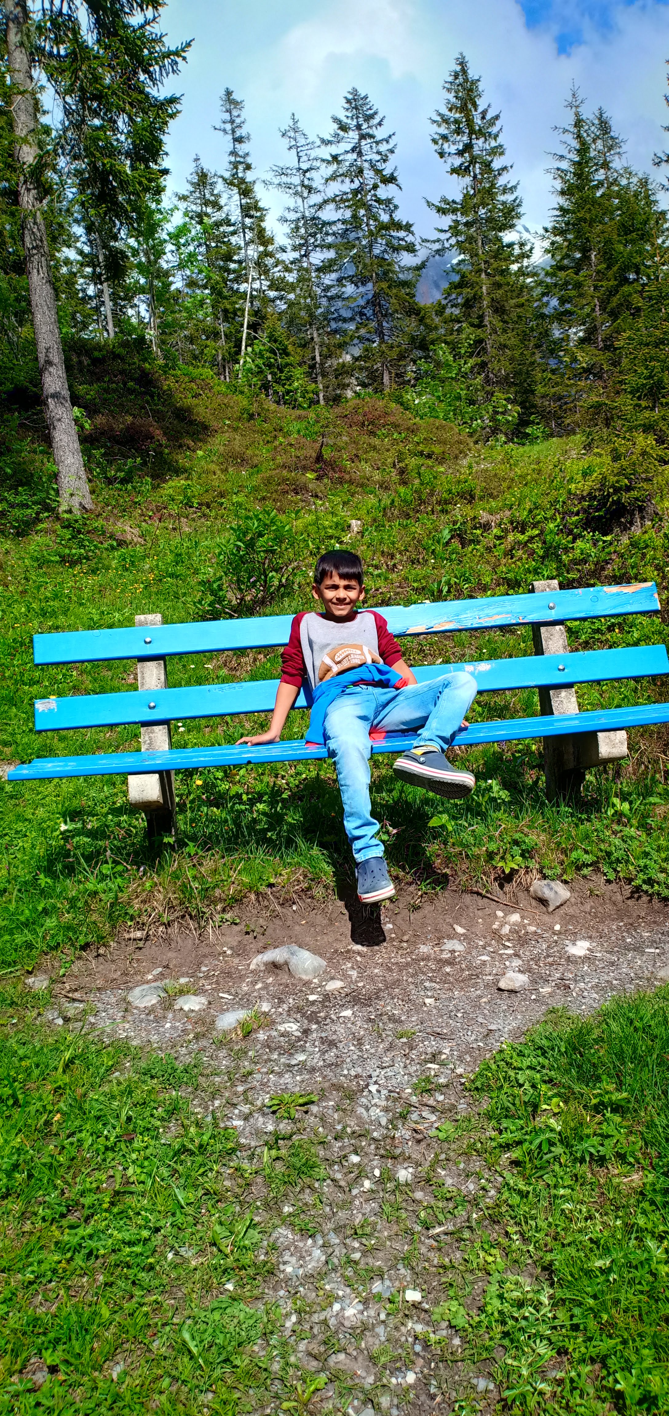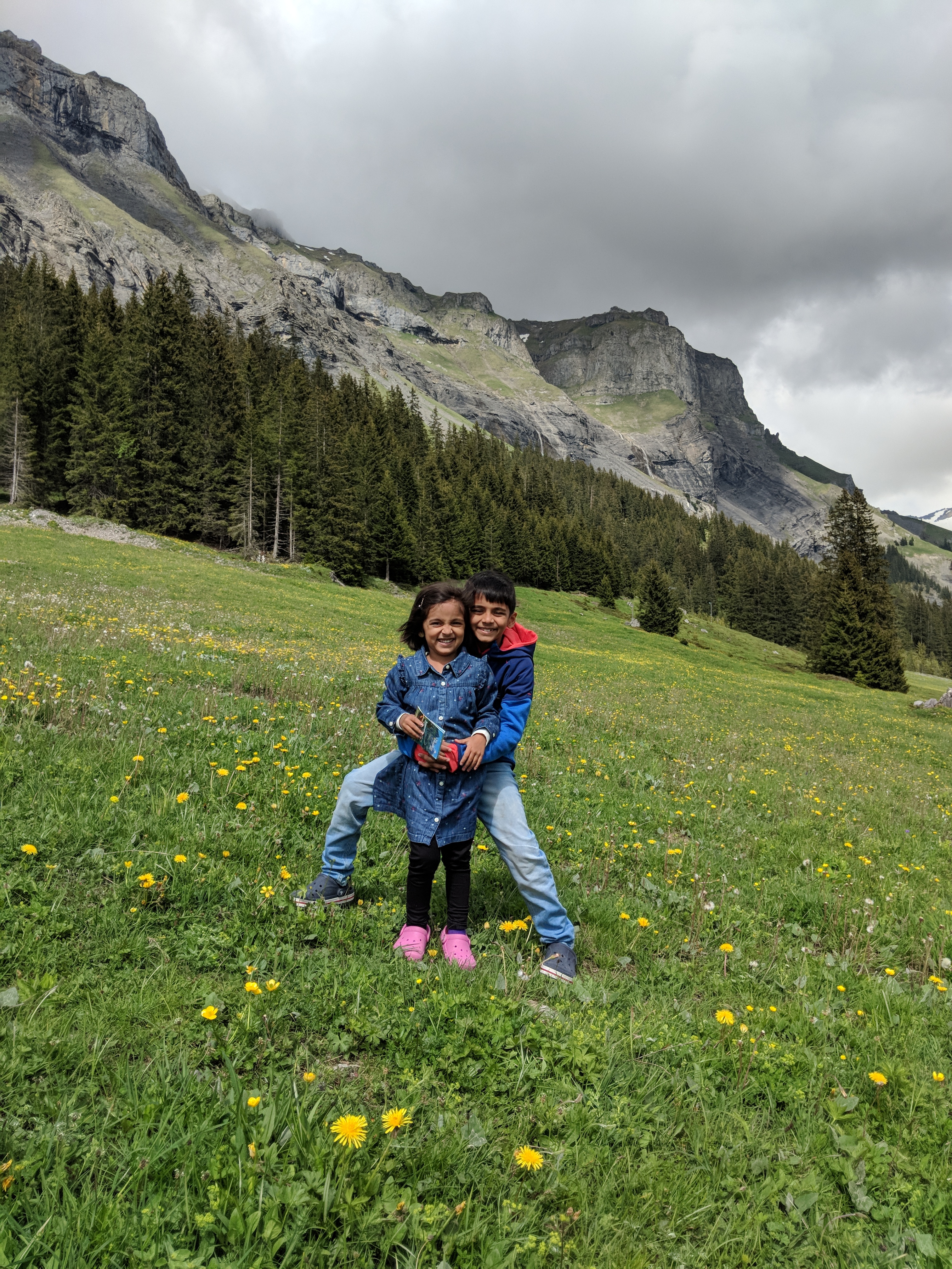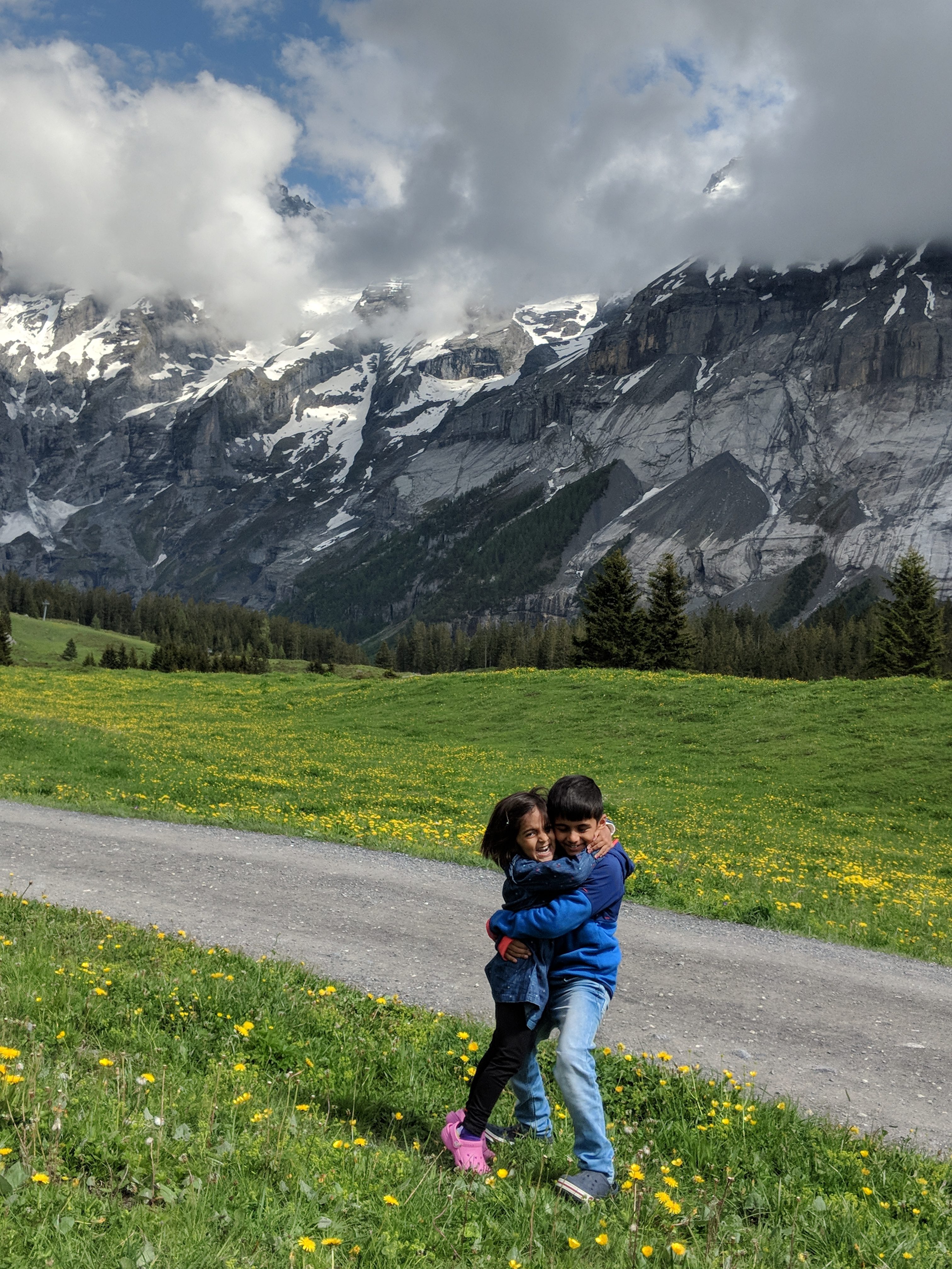 This was one thing that kids and I were equally excited about!  But as soon as we reached Oeschinensee at around 3 pm, the views made us go absolutely crazy! Crazy clicking pictures! (Just like a bunch of Chinese youth with us! In fact though out the trip we noticed, Chinese are as obsessed as us Indians with clicking pictures!)  I won’t say it killed our time ‘coz it was definitely worth it!  Losing the track of time, we though that we would do it on our way back!