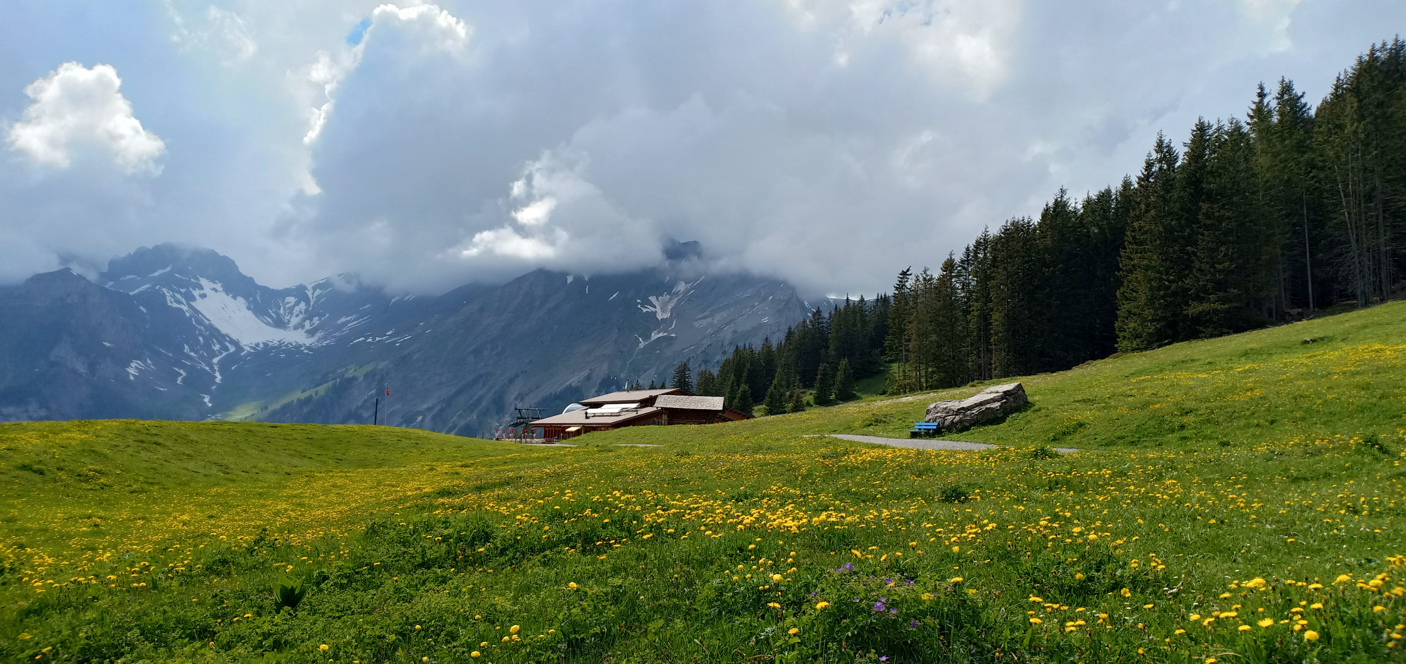 Now after coming back, while I was going through some articles on Oeschinensee, I read that the walk downhill is pretty doable and BEAUTIFUL!  I so wish we had…:P